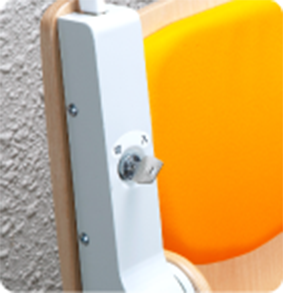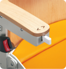 レバー式でひじ掛けから少しスイッチが出るため、ひじ掛けの板そのものを少し長めに前に出すことで、間違って触れて誤作動を起こすことを防止しています。