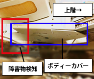 シート左右どちらかのレールに障害物があり、障害物検知装置が作動しています。